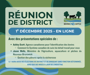 The New Brunswick Cattle Producers will host one virtual District Meeting via Zoom on December 1, 2025.