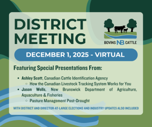 The New Brunswick Cattle Producers will host one virtual District Meeting via Zoom on December 1, 2025.